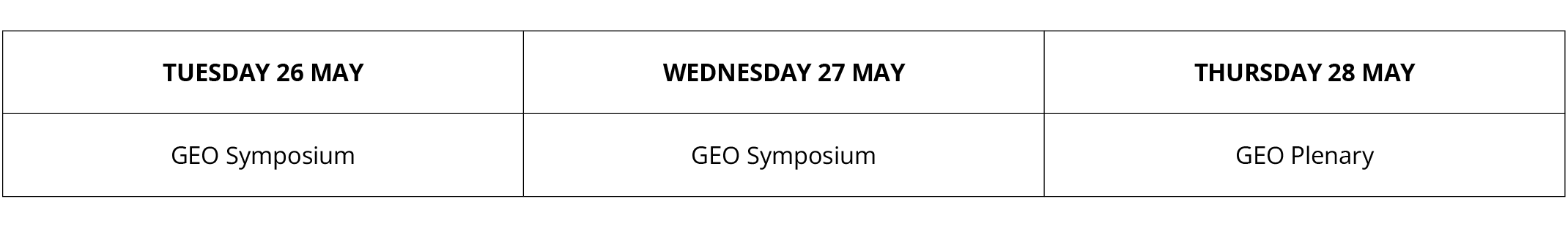 * The GEO Symposium and open GEO Plenary Sessions will be live streamed. Live streaming registration is not required.
